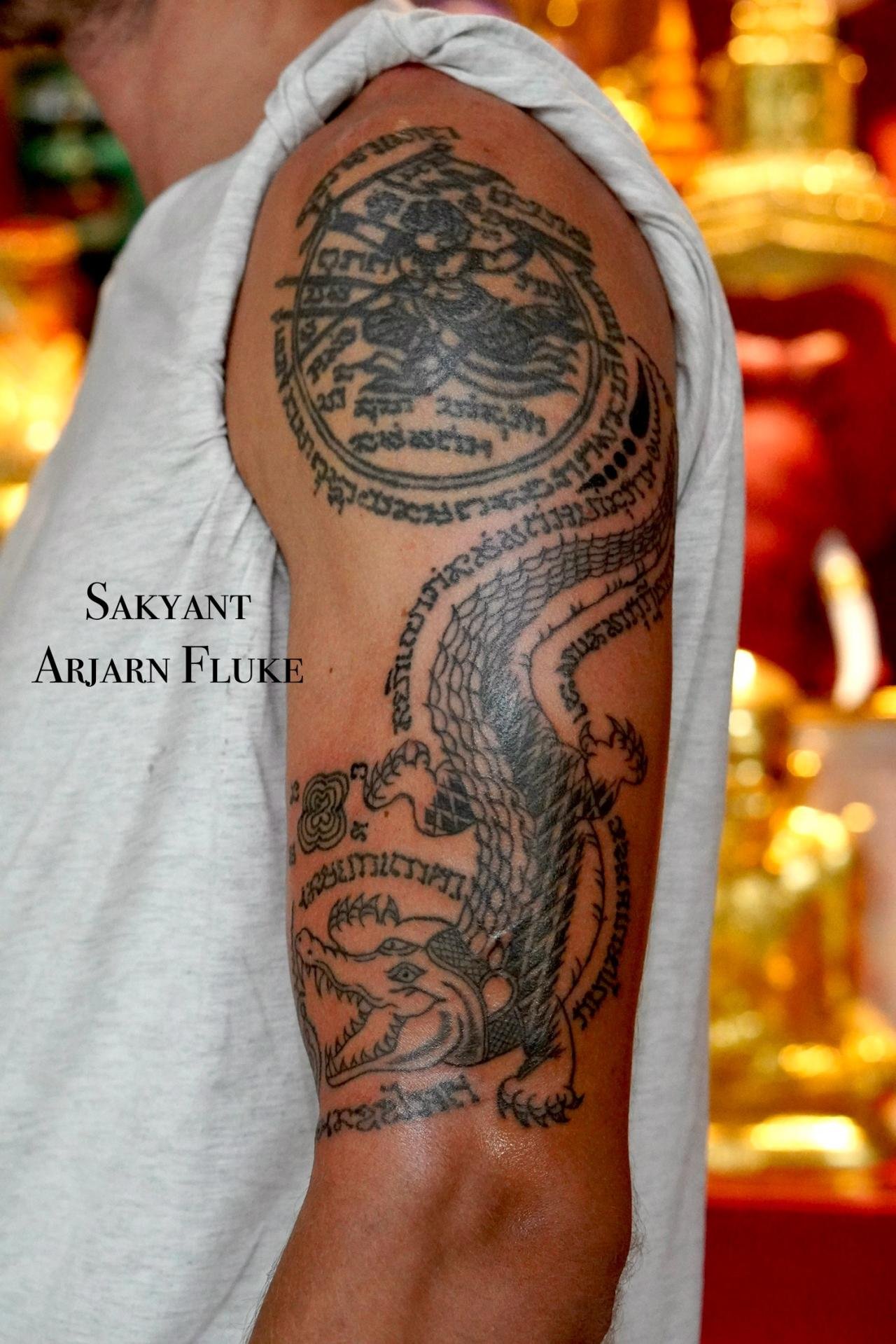 Arjarn fluke was fascinated by the science of Sak yant so he learned sak yant and reading ancient Thai characters and magic from 3 teachers. If you get sak yant with arjarn fluke you will get a valid tattoo.