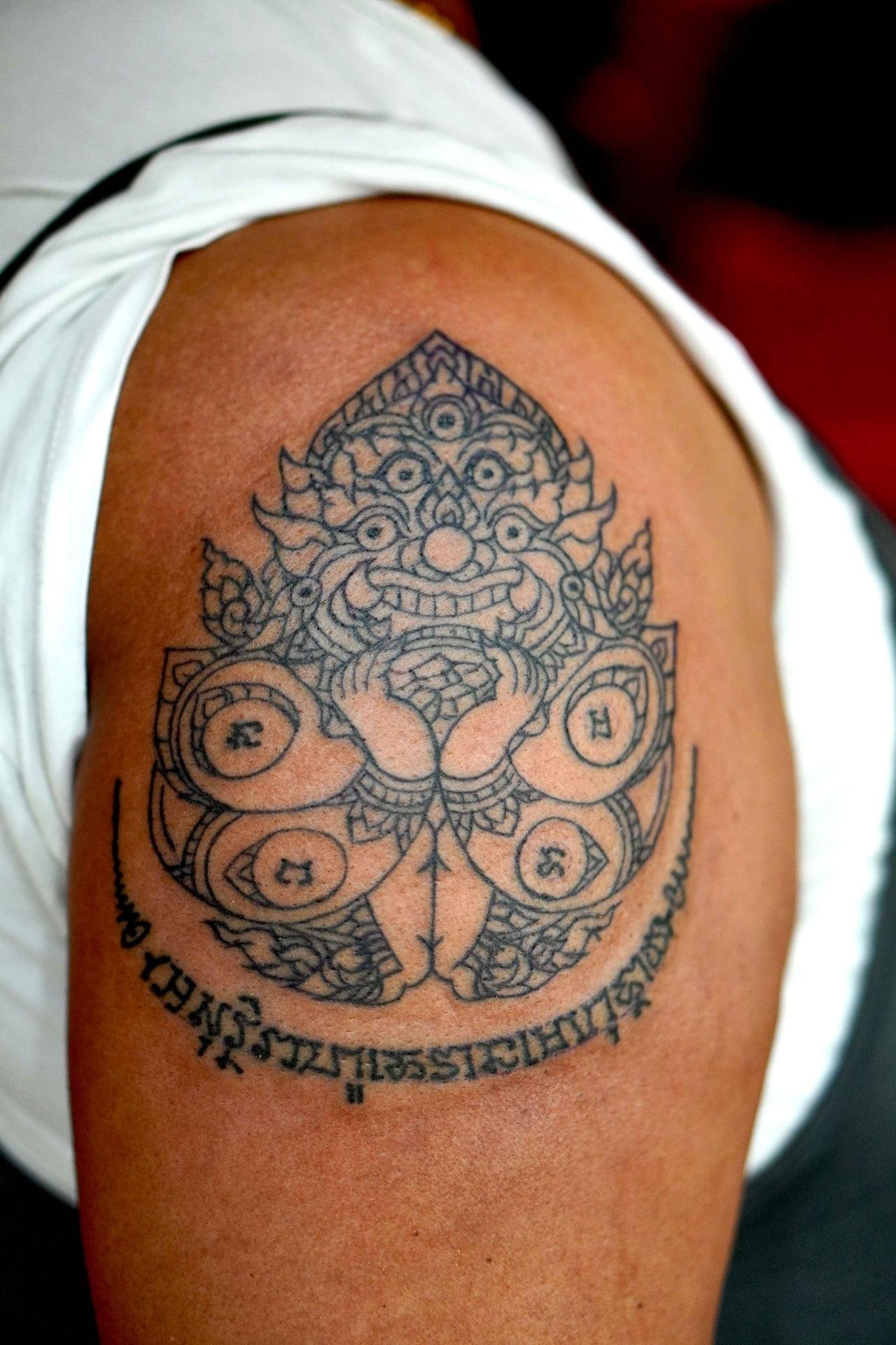 Arjarn fluke was fascinated by the science of Sak yant so he learned sak yant and reading ancient Thai characters and magic from 3 teachers. If you get sak yant with arjarn fluke you will get a valid tattoo.