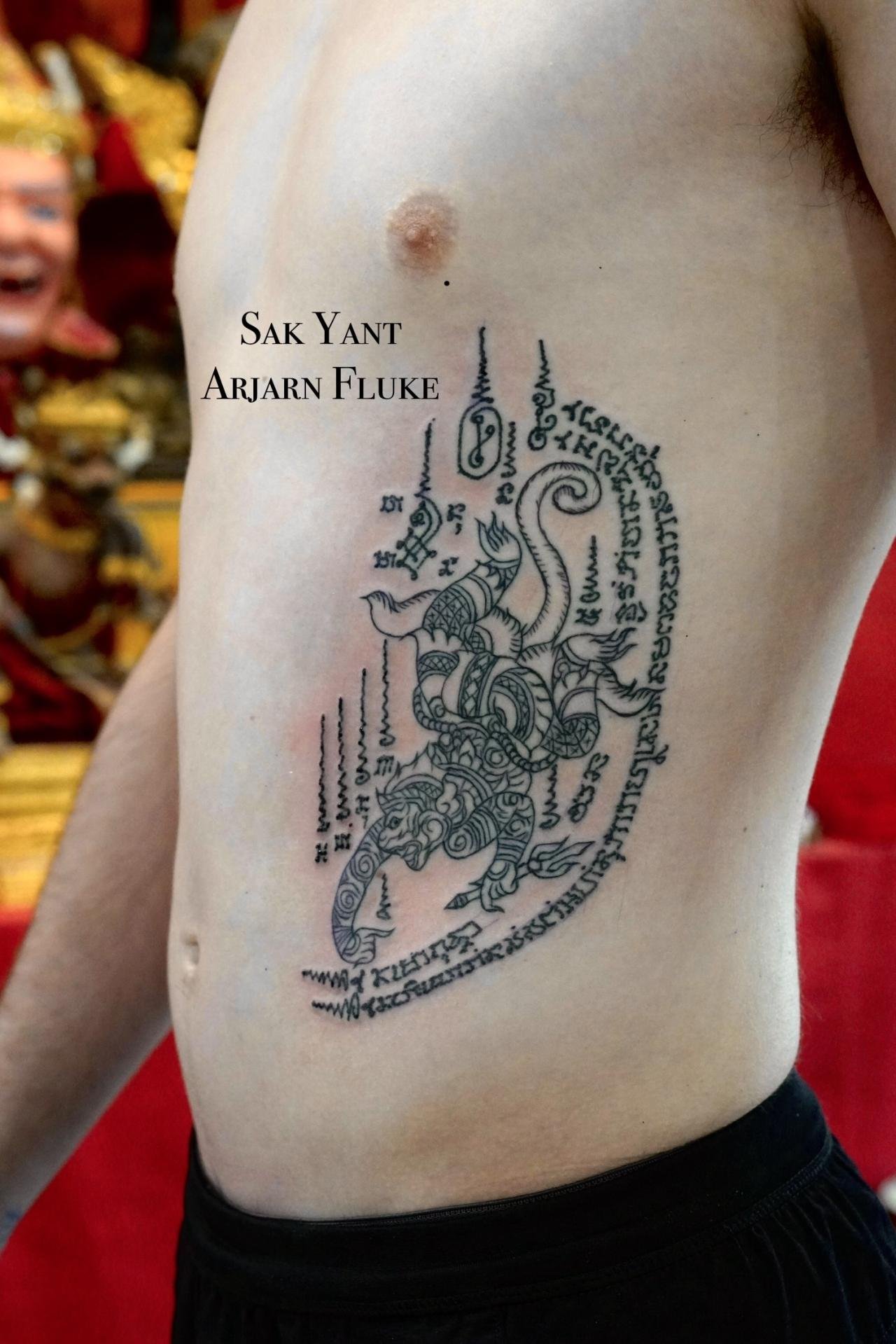 Arjarn fluke was fascinated by the science of Sak yant so he learned sak yant and reading ancient Thai characters and magic from 3 teachers. If you get sak yant with arjarn fluke you will get a valid tattoo.