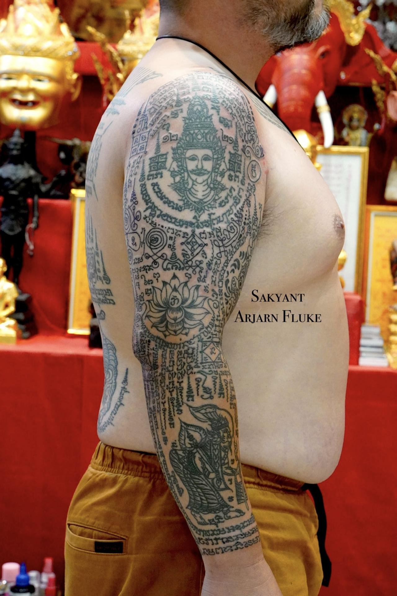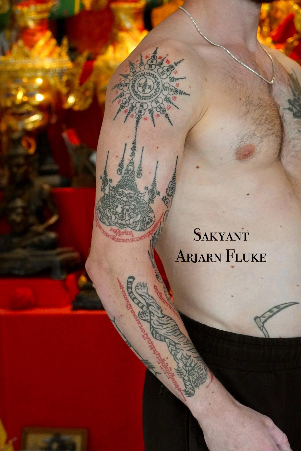 Arjarn fluke was fascinated by the science of Sak yant so he learned sak yant and reading ancient Thai characters and magic from 3 teachers. If you get sak yant with arjarn fluke you will get a valid tattoo.