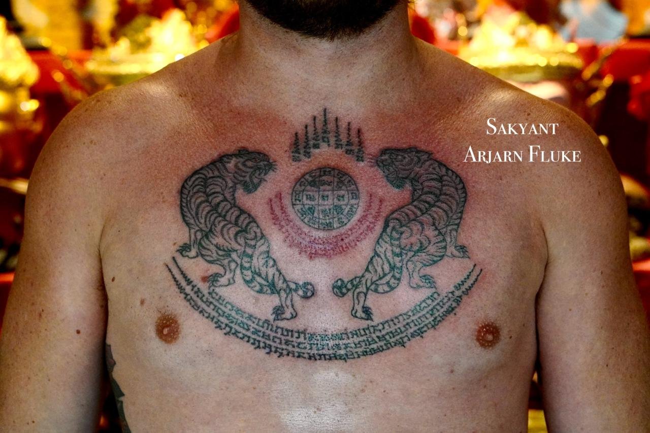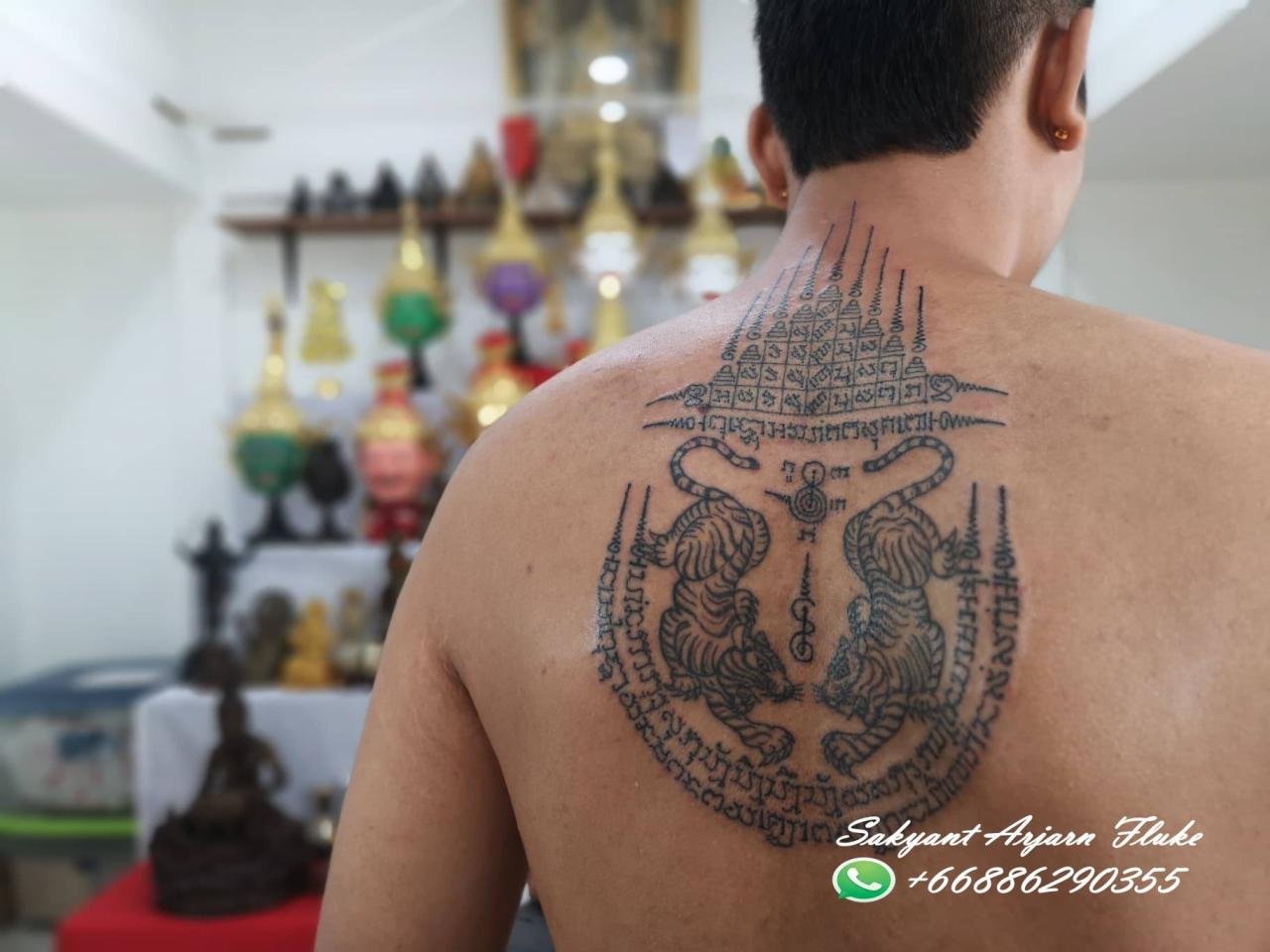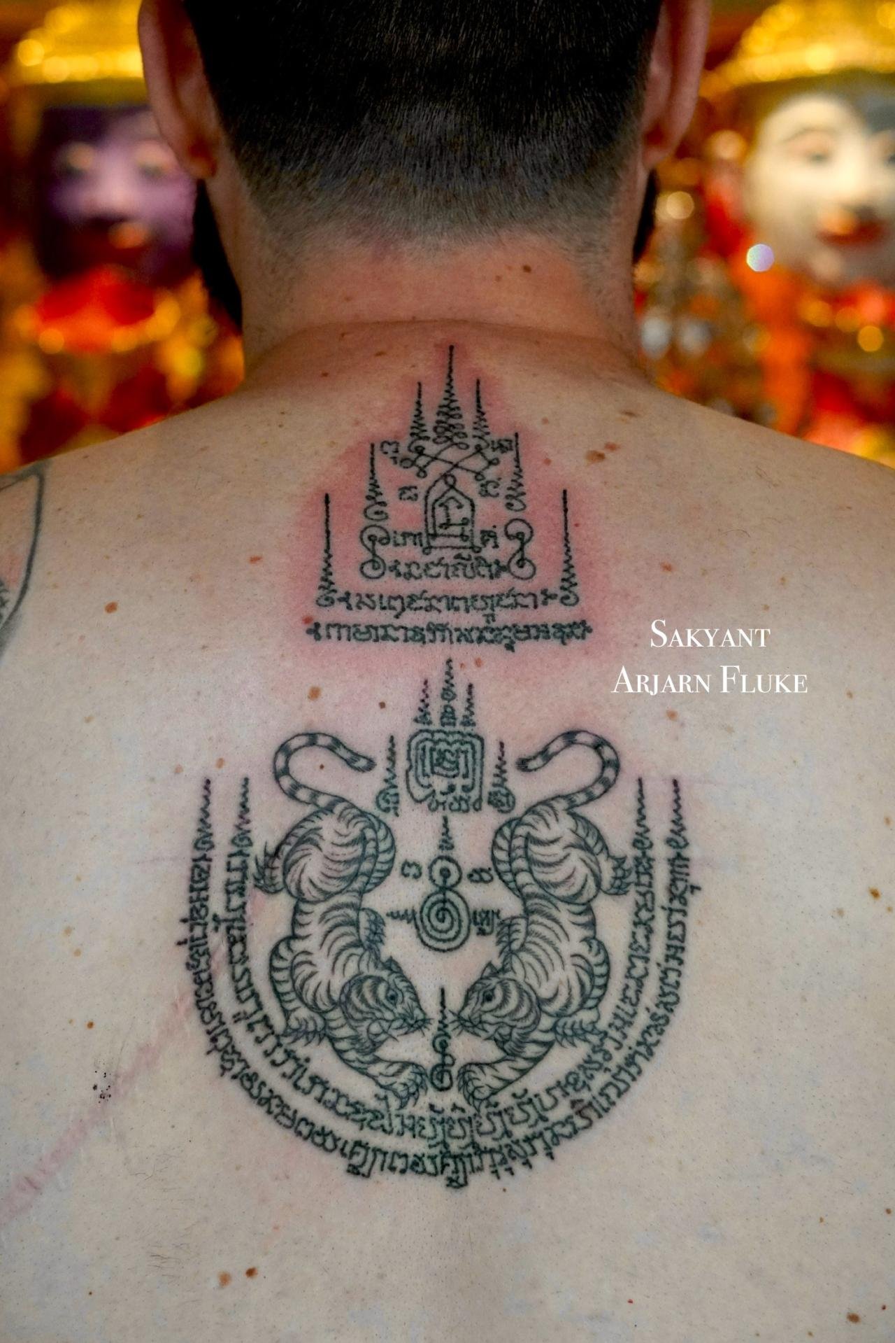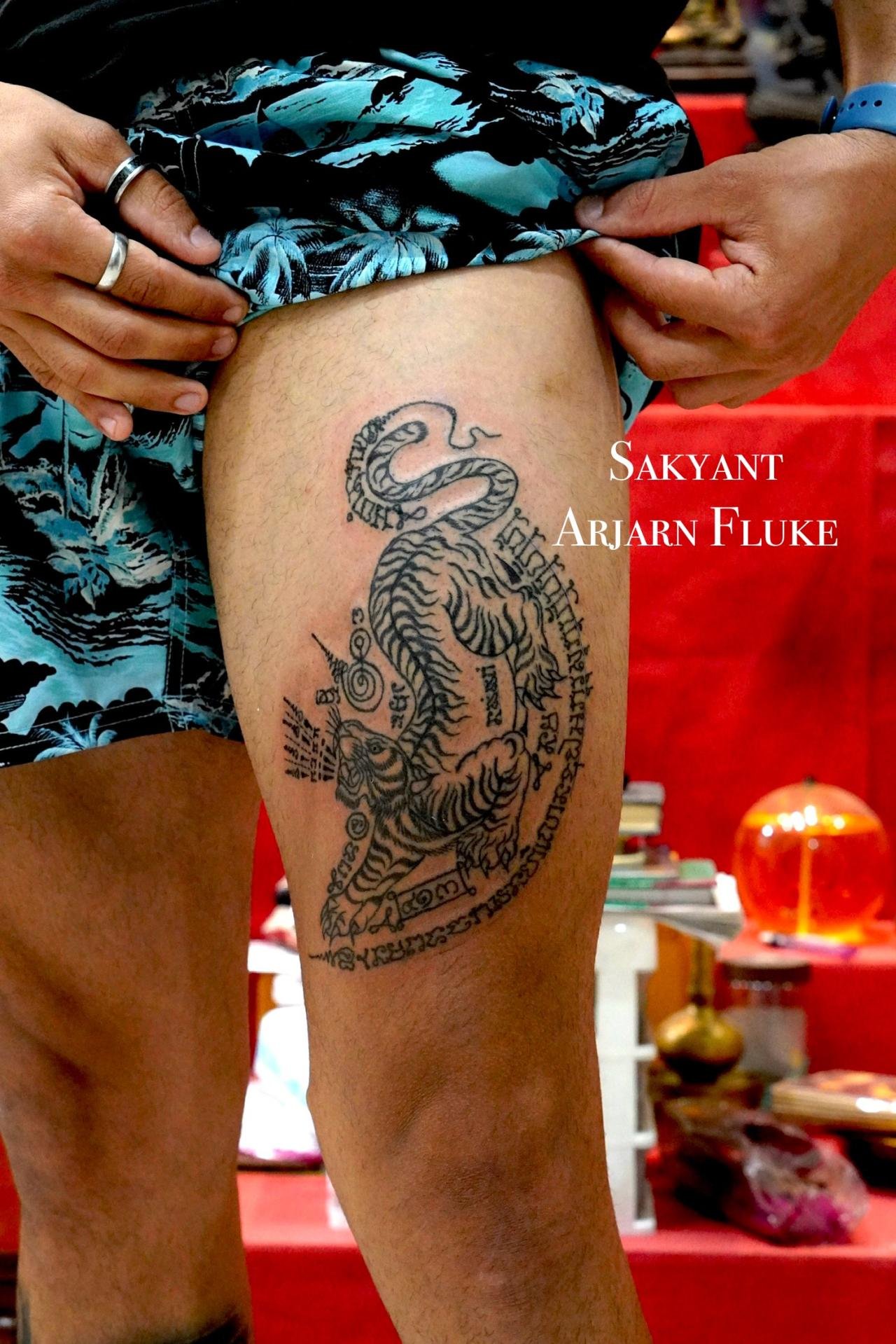 Arjarn fluke was fascinated by the science of Sak yant so he learned sak yant and reading ancient Thai characters and magic from 3 teachers. If you get sak yant with arjarn fluke you will get a valid tattoo.