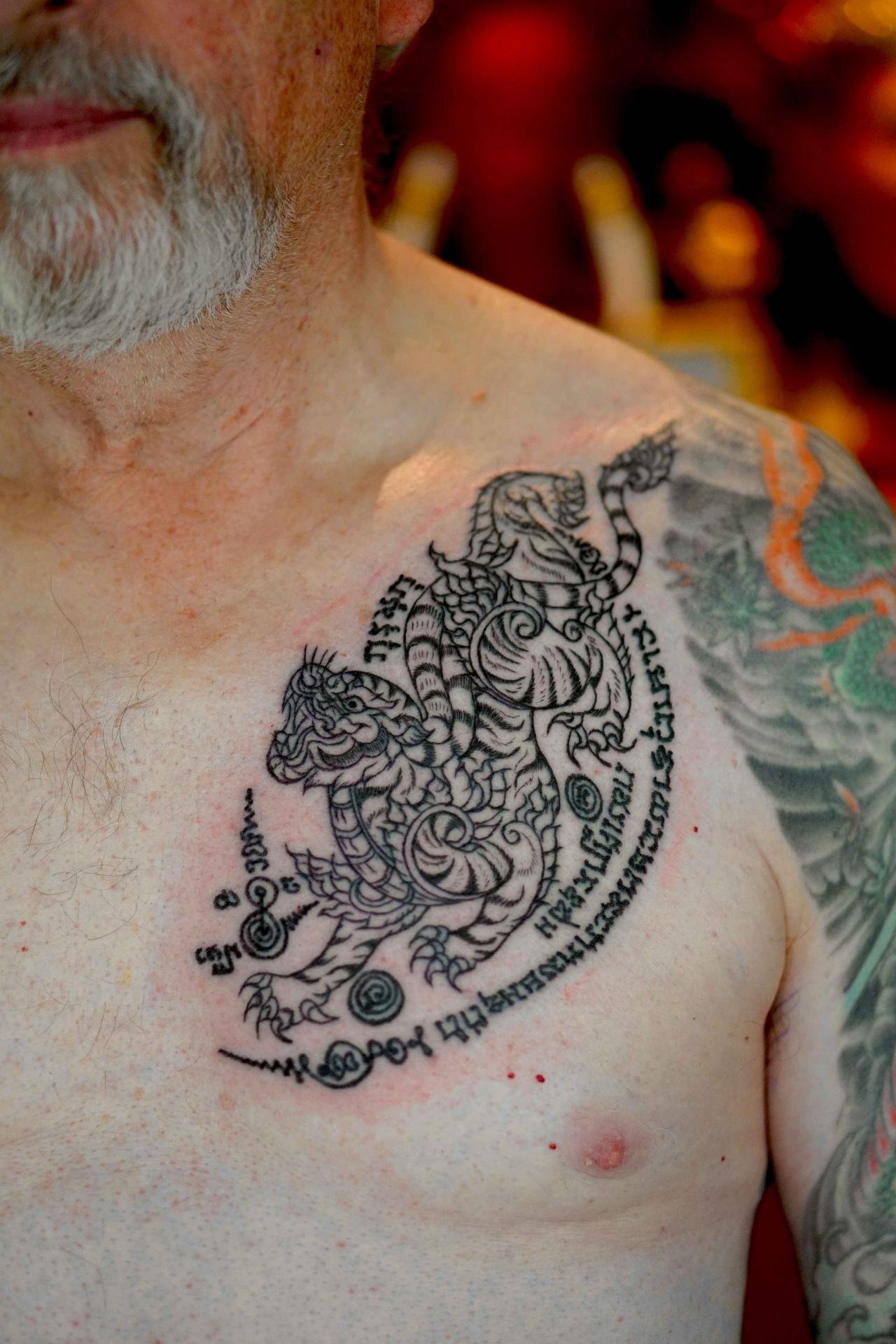 Arjarn fluke was fascinated by the science of Sak yant so he learned sak yant and reading ancient Thai characters and magic from 3 teachers. If you get sak yant with arjarn fluke you will get a valid tattoo.